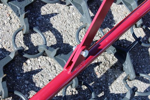 - Gußsterne jeweils mit flacher und spitzer Seite, 2 Reihen mit der Spitzen Seite unten zum aktiven Auflockern und Einbringen von Mist usw. 2 Reihen mit der Flache Seite nach unten zum Einebnen - schwere Gußelemente mit 2,1kg - massive Ausführung - 900kg - extrem stabile Doppelscharniere - 2 Hydraulikzylinder mit mechanischer Verriegelung, keine Kette nötig! - Gleitkufen an jeder Außenkante - Eggenfeld mit Schäkel am Rahmen befestigt - Eggenfeld beidseitig verwendbar, doppelte Lebensdauer - Pulverbeschichtet - sofort verfügbar!Hektar (ha): 0