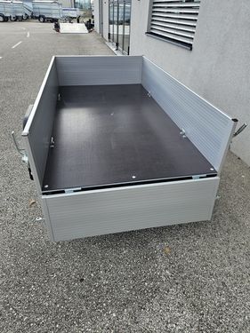 GG: 750 kg, NL: ca. 629 kg, EG: ca. 121 kg Innenmaße: 2030 x 1080 x 350 mm, Bereifung: 13“ 3 feuerverzinkte Längsträger, Kunststoff-Kotflügel Knott-Gummifederachse mit Einzelradaufhängung 12 mm starker mehrlagig wasserfest verleimter Holzboden mit rutschhemmender Siebdruckoberfläche Bordwände 350 mm, doppelwandig elox. Aluminium-Profile 4 Stk. Zurrbügel mont, Stecker 13-polig Stützrad mit Halter, inkl. TypenscheinZul. Gesamtgewicht (t): 0,75