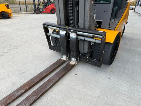 Bauart: Frontstapler / Elektro 4 Rad-Stapler, Tragkraft: 5000kg, Hubhöhe: 5500mm, Bauhöhe: 2600mm, Freihub: 1550mm, Gabellänge: 1600mm, Batterie: PzS Bj. 2018 80V 930Ah Zustand: 60 - 80%, Bereifung vorne: Superelastik Zwilling , Bereifung hinten: Superelastik Einfach , Anbaugeräte: Seitenschieber, Zinkenverstellgerät, Sonderausstattung: 3. Ventil, 4. Ventil, Arbeitsscheinwerfer hinten, Heizung, Vollkabine, Vollfreihub, Innenspiegel, Rundumleuchte, Scheibenwischer, Einpedal, LED, Sitz,Kontaktdaten: