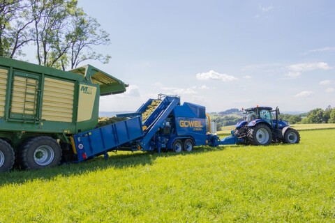 GRUNDAUSSTATTUNG:Doppelwickelarm, Bordhydraulik mit ÖlkühlerKombinierte Doppelbindung für Netz und FolieHydraulische Bändervorspannung, Rückführband für eventuelle BrökelverlusteMulticrop-Zubringer (Arbeitsbreite 3.50 m)Höhenverstellbare Zugdeichsel, Fahrbarer Wickeltisch4 Stück Ballentransportbänder mit Bandführung und 2 Stück BallenleitrollenBallenablage nach vorne über hydraulische BallenablagerampeHöhenverstellbare ZugdeichselFolienvorstreckeinheit 500 und 750 mm kombiniert mit ÜberlappungseinstellungFolienabschneide- und AnlegeautomatikArbeitsscheinwerfer LEDHydraulisch absenkbares Folienmagazin für bis zu 18 Rollen FolieVollautomatische Programmsteuerung PROFI plusTandemachsfahrwerk mit Federung und Bereifung 385/55 R22.5Folienüberwachung, Einfolienbetrieb, KamerasystemWassereinspritzung für PresskammerVollautomatische ZentralschmierungFür Ballendurchmesser: 115 cmTECHNISCHE DATEN // GRUNDAUSSTATTUNG:Gewicht: 14'800 kgLänge: 11'780 mmBreite: 2'550 mmHöhe: 4'000 mmBallendurchmesser 115 cmLEIS