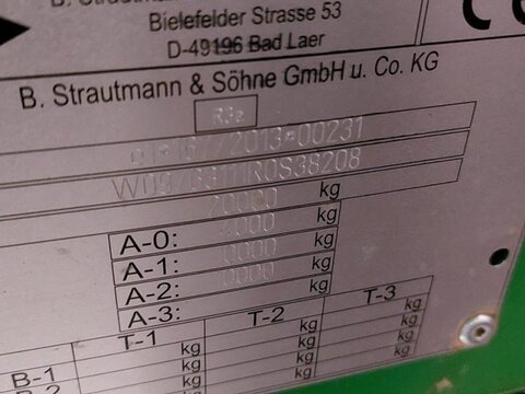 Zum Verkauf ein Strautmann Ladewagen Magnon 10 - 430 Lagermaschine aus 2024 Strautmann Ladewagen Magon 10-430 - Basismaschine Magnon 10-430 - EU-Typgenehmigung 40km/h - Hydr. Tandem-Fahrwerk (BPW) mit elektr.-hydraulischer Zwangslenkung, 40 km/h, Radstand 1820 mm, Spur 2100 mm, Bremse 410 x 180, 20 t Achslast (für Bereifung 30,5") - 4 x Rad kpl. 800/45 R 30,5 176D ET-50, 10-Loch, Vredestein Flotation Trac - 2-Leitungs-Druckluftbremse mit ALB (für Tandem-Fahrwerk) - Ohne Federung für hydr. Tandem-Fahrwerk - Deichsel Untenanhängung mit Zugkugelkupplung, 4 t Stützlast - Bedienung über ISOBUS Pro (bei E-Zwangslenkung und Abdecksystem) - ISOBUS-Bedienterminal 5" - Hydraulikkupplungen mit Load-Sensing Anschluss, Größe 2 und 4 - Schneidwerk mit 48 Messern - Flex Load Pick up - Aufbau für Magnon CFS 430 - Abdeckungsystem (Laderaum im Schwenkbereich der Heckklappe nicht abgedeckt) - Gelenkwelle mit Nockenschaltkupplung 2200 Nm einseitig Weitwinkel Z=6 1 3/8 - Seitenmarkierungsleuchten - Umrissleuchtung - Begrenzungsleuchten vorne - Rückfahr- und Laderaumkamera mit Monitor - 2 x Arbeitsscheinwerfer LED 1 x links und 1 x rechts vorne unter der Plattform - Zusatztastrolle hinter der Pick-up - Abdecksystem (Laderaum im Schwenkbereich der Hecklappe nicht abgedeckt) - 2. Satz Schneidwerkmesser (48 Stück) - Betriebsanleitung DE Alle Angaben ohne GewährKontaktdaten: