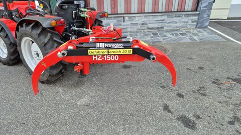 Ausstellungsgerät Fransgard Forstzange für kleinere Traktore, von 20-50 PS, Öffnungsweite 1500mm, mech. beidseitig ca. 45° schwenkbar, nur 1DW Steuergerät erforderlich, Eigengewicht nur 132kg, Schließkraft des Zylinders 2,5 to bei 120 bar, Qualitätsprodukt - Made in Denmark !Zul. Gesamtgewicht (kg): 2500