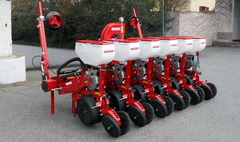 Mascar-Einzelkornsämaschine Maxi-5 mit hohem Säelement (für Rüben, Mais, Sonnenblumen, Kürbis etc.), 50 cm Reihenabstand, Doppeltiefenführungsrollen, V-Gummi-Andruckrollen 2", zentrales Wechselradgetriebe (18 Gänge), mechanische Reihenauskuppelvorrichtung, hydraulische Mittelspuranzeiger, Antriebsräder 5.00 x 15, Gelenkwelle. Abbildung ist Symbolbild von Maxi-5-Version! Beantragen Sie bis zu 20 % Investitionsförderung für diese angebotene Maschine! Fördermaßnahme "Investitionen in die landwirtschaftliche Erzeugung (73-01)". Nähere Informationen erhalten Sie bei Ihrer zuständigen Bauern- bzw. Landwirtschaftskammer. Unser Verkaufsteam zeigt Ihnen gerne persönlich die angebotene Maschine. Vereinbaren Sie mit unseren Mitarbeitern einen Termin oder besuchen Sie zu den angeführten Geschäftszeiten. Wir stehen Ihnen gerne zur Verfügung.Reihenanzahl: 6