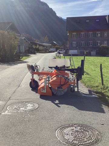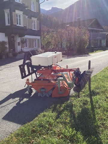 Kehrmaschine Talex Ecoclean 230, Traktoranbau mit Weistedreieck, Pendelausgleich, einstellbare Tasträder, Hydraulischer Hauptbesen, Hydraulischer Seitenbesen, Wassertank 175 Liter, 12V Elektropumpe, Sprüheinrichtung für Haupt- und Seitenbesen, Schmutzwanne hydaulisch zu entleeren, Besen aus PU mit Stahldraht gemischt, Hauptbesen neu. Arbeitsbreite [m] 2,3 Minimaler Ölbedarf [l/min] 25 Max. hydraulischer Betriebsdruck [bar] 160 Fassungsvermögen des Kehrgutbehälters [l] 200 Durchmesser der Hauptbürste [mm] 510 Kehrmaschinengewicht - Version mit voller Ausstattung [kg] 580 Aufnahme Dreipunktaufhängung front oder hinter einer beliebigen Kategorie Hauptbürste MIX (Metall+Polypropylen) oder PPN (Polypropylen) oder SPIRAL (für Schnee) Weiter Angaben des Herstellers: Wassersprüheinrichtung: Verringert der Staubemission während des Betriebs 175L Wassertank mit Außenfilter Druckpumpe (12/24 V) Sprühbalken mit Flachdüsen Auch auf der Seitenbürste montiert Schwimmstellung: Verhindert, dass die Maschine in den Boden gedrückt wird Ermöglicht einen störungsfreien Betrieb der Maschine bei Unebenheiten Sichert eine perfekte Bodenanpassung, wodurch die Maschinenausfälle reduziert werden Hydraulischer Antrieb: Die Maschine wird von einem hocheffizienten 14 kW Industriemotor (Gerotor-Motor) angetrieben Laufräder: Durchmesser 200x50mm mit Vollaluminiumfelge Manuell einstellbar In der Standardausrüstung 3 Stützräder Arbeitswinkelverstellung: Im Standard mechanische Arbeitswinkelverstellung, es ist möglich die Maschine mit hydraulischer Arbeitswinkelverstellung auszurüsten Seitenkehrbesen: 650 mm Die Bürste kann auf der rechten oder linken Seite montiert werden Verfügt über eine Sicherheitsvorrichtung, die die Bürste nach oben anhebt, wenn sie auf ein Hindernis trittKontaktdaten:
