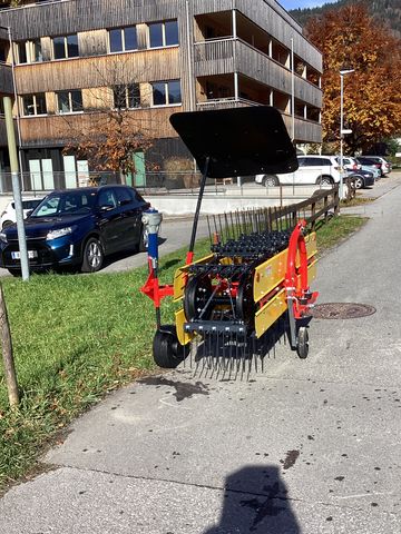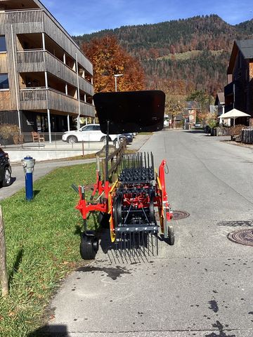 Fünfreihiger Bandrechen Knüsel Vario 235/5 passend zu Reform Metrac, technische Daten: Arbeitsbreite mit Schwad m 3,0, Total Transportbreite m 2.45, Räumbreite m 2.20, Zinkenpaare 5 Stk., Zinkenrechen 13 Stk. , Zinkenbreite mm 450, Gewicht kg 295. Baujahr 2020 in Neuwertigem ZustandHektar (ha): 5
