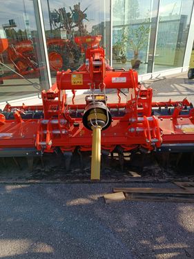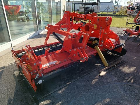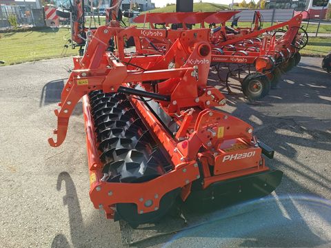 Kubota PH2301 Kreiselegge mit Hydrolift - Arbeitsbreite 3,0m - Transportbreite 3,0m - Wannenabmessung 165 x 400mm - Gewicht 1.760kg - erforderliche Zugkraft min. 85PS bis max. 180PS - Dreipunktanbau Kat. 2/3 - Zapfwellendrehzahl 1.000U/min - GKN Walterscheid Gelenkwelle mit automatsicher Kupplung 1-3/8" Z6 für 1.000U/min - Überlastsicherung an der Gelenkwelle 2.000NM - Rotoren 12 mit je 2 Zinken helical angeordnet - Rotordrehzahl 336U/min - Abstand Kegelrollenlager 84,5mm - Rotorfreiraum 90,5mm - Zinkenabmessung 15x330mm - Schnellwechselzinken QuickFit - Tiefeneinstellung manuell - robuster Hydrolift bis 1,6t - Nachläuferwalze Zahnpacker d=575mmHektar (ha): 0