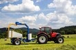 GrundausstattungEinfachwickelarmHydraulisch kippbarer Wickeltisch4 Stk. Ballentransportbänder mit Bandführung und 2 Stk. BallenleitrollenBallenaufnahme und- ablage nach hintenFolienvorstreckeinheit 750 mmFolienabschneide- und AnlegeautomatikFolienmagazin für 4 Rollen FolieAnhängedeichsel (höenverstellbar)Bereifung 380/55-17AWLicht- und BlinkanlageLED ArbeitsscheinwerferProgrammsteuerung STANDART mit Funk: Die Funktionen für die Ballenaufnahme und -ablage erfolgen mit dem elektronischen Joystick. Die Arbeitsabläufe "Wickelvorgang" sowie "Folie anlegen und abschneiden" erfolgen automatisch.Technische DatenGewicht: 1150 kgLänge 3'885 mmBreite: 2'440 mmHöhe: 3'010 mmÖlbedarf: ab 20l/min bei max. 190barBallengewicht: max. 1400 kgErforderliche Anschlüsse1 Druckanschluss und einen drucklosen Rücklauf für die Versorgung der Wickelmaschine (entfällt bei Zapfwellenantrieb)3-polige Steckdose für die elektrische Versorgung dir direkter Zuleitung zu Batterie (12V/30A) Leitungsquerschnitt 2x6 mm27-polige Steckd, Gewicht:1150