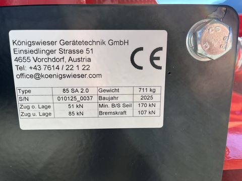 KGD 85 SA 2,0m Zugkraft: 6.5 to. Schildbreite: 2,0 m Inkl. unterer Seileinlauf, Anhangkupplung, Seilausstoß, Motorsägenhalterung und Handbediengerät Seil Ø12mm 130m HV Seilendstück Rückhängel. 12-14mm blau Seilgleiter GB8 Grad 100 "blau" 2 Stk. Würgekette 8 x 2000 Grad 100 "blau" 2 Stk. Gelenkwelle Unterlenkerkugel Kat 2 2 Stk. Oberlenkerkugel Kat. 2-2 Profi-Funkanlage TERRA FA5 mit Sonderbremsfunktion (SBS) EndabschalterZul. Gesamtgewicht (kg): 8500