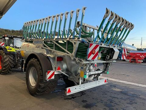 Kotte Vakuumtankwagen VE 11.800 Bergflitzer mit folgender Ausstattung: Behälter 11.800 Liter Volumen (brutto)1.750mm Ø, 4.650 mm zyldr. Länge, 5mm Behälterwandstärke Nettovolumen ca. 11.350 Liter Rahmen und Behälter verzinkt, aussen mit Klarlack beschichtet Rahmen durchgehend mit Kantprofil, beidseitig Haken hinten am Fass, 2 verschraubte Schwallwände im Behälter lt. DIN EN 707, Mannloch DN 600 Schlauchhalter beidseitig, Plexiglasschaurohr NW 100 mit Reinigungsmuffe starre Untenanhängung für K80, 3t Stützlast 650mm Kupplungshöhe Stützwinde stufenlos höhenverstellbar Bereifung 850/50 R30.5 BKT 182 D, FL 630 SUPER STEEL BELTED Radkästen pro Achse für Kunststoffkotflügel (Einachsaggregat) verstärkte Achse Original BPW mit Achsvierkant 150x150, Bremstrommel 410x180, mit Parabelfederung unterhalb der Achse 2-Leiter-Druckluftanlage mit automatischer lastabhängiger Bremse (ALB) Spur 1950mm für Bereifung 850/50-30.5 Kunststoffkotflügel bei Einachs-Güllewagen in niedriger Bauweise LED Dreikammerbeleuchtung mit Schutzkästen inkl. Dreiecksrückstrahler, Rechteckrückstrahler für Einachs-Güllewagen TÜV-Abnahme 40 km/h mit Gutachten Kompressor PNE 124 Jurop, Luftleistung 12.400l/min, 1.000 U/min, mit automatischer Schmierung,bSiphonabscheider und oberer Abscheider verzinkt, Vakuum-Luftfilter mit schalldämpfender Wirkung und Öl-Abscheider (verzinkt), mit Ablasshahn, geprüftes Sicherheitsventil, WW-Gelenkwelle Original Walterscheid PWE 480, 60h, mit Buchsbodenschmierung und Scherbolzensicherung 10mm hydr. Glockenschieber6 Zoll hinten mech. Kompressorumschaltung laut DIN EN 707 Befüllhilfe NW 200 einschließlich Rundflansch NW 200 vorne unter dem Behälter, mit Ansaugmöglichkeit links und rechts über T-Stück NW 200 (verzinkt), mit Reinigungsöffnung unter dem T-Stück, Antrieb über Danfoss-Hydrmotor, Antriebsleistung min. 60l T-Stück für Niedrigbauweise mit gekröpften Rohrbögen Stutzen Ø 150mm Doppelflansch hinten links Keilflanschschieber 6" VL mit Handhebel und Schnellkuppler mit Schauglas und Belüftungshahn, mit Reduzierstück NW200 auf NW150 Konsolen für Festanbau Schleppschuhverteiler: BOMECH Speedy ONE Arbeitsbreite 10,50 m Schleppschuhe aus geh. Stahl mit spez. Gummidüsen und Federhaltern hydr. angetriebener Exaktverteiler Alrena V42 Reihenabstand 25 cm, Gewicht ca. 925 kg, Transportbreite 2,55 m Hydraulikzylinder mit Endlagendämpfung Transportverriegelung integriert im Mittelrahmen integr. Hangausgleichsystem im Mittelrahmen Nachtropfsperre zum Hochdrehen der Ablaufschläuche Anbaupaket Speedy One Festanbau bei VTW mit Zugführung Mannloch unten Steuerung Bomech SPO I-Control, vollautom. Folgeschaltung für alle Funktionen von Bomech Schleppschuhverteiler, Funktionen: Heben/Senken, Ein- und Ausklappen, Verteilerkopf Der Preis der Maschine bezieht sich auf den technischen Zustand und die Ausrüstung wie lagernd. Aus etwaigen Irrtümern und falschen Angaben entstehen keinerlei Ansprüche. Gerne sind wir telefonisch für Sie erreichbar. Sollten Sie uns eine Nachricht schreiben wollen, möchten wir sie bitten, uns Ihren vollständigen Namen und eine Telefonnummer zu schicken. Ohne dies werden wir keine Nachricht mehr beantworten. Bei nicht deutschsprachigen Interessenten bitten wir um die Emailadresse und wir schreiben über ein Übersetzungsprogramm zurück.Kontaktdaten: