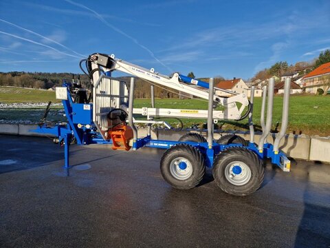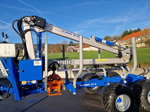 Jetzt in die Zukunft investieren und Steuerlich profitieren ! Mit je 30% Sonderabschreibung in den ersten drei Jahren möglich ! Keine komplizierten Förderanträge ! – die steuerliche Umsetzung erfolgt über Ihren Steuerberater Forstanhänger: Scandic ST-8 - Außenbreite nur 2m - 10,5 Tonnen zulässiges Gesamtgewicht (auf nicht öffentlichen Straßen) - 8t zulässiges Gesamtgewicht auf öffentlichen Straßen - Verschiebbare Achsen - Verschiebbare Rungen - Einhänge Ösen für Spanngurt - hydraulische B-Abstützung inkl. Sperrblock - hydraulische Deichsellenkung 2 Zylinder 80° schwenkbar - 1. Achse Auflauf gebremst - 2. Achse Hydraulisch gebremst - 4 Paar Rungen (erweiterbar) - Rungen und Prallgitter Verzinkt - Einschiebbare Beleuchtung (Blinker Rücklicht) - Räder 400/60-15.5 Forstfelgen - 40° Boogieachse - Rahmenverlängerung (Ausziehbar) um ca. 60cm - Aufklappbare Plattform mit einer Hand komplett zu öffnen - Alle Zylinder geschützt - Inklusive 25kmh Betriebserlaubnis Bedienung: - Kombi-Komfortsteuerung mit 8 Funktionen - 2 Kreuzhebel mit Kippschalter für Zange und Teleskop elekt. bedienbar - 2 Hebel für Stützbeine Forstkran: - Kran 6,50m mit Teleskop 7,1m Greiflänge - 4-Zylinder Schwenkwerk 14,5kn - Teleskopzylinder innenliegend - Einstellbare Kunststoff Gleitlagerbuchsen in den Teleskop Arm - 600kg (60kn) bei maximaler Reichweite - Greifer SG-20 mit 3 to Rotator und 1450mm Öffnungsweite Bilder können Zusatzausstattung beinhalten. Auf Anfrage: - Rückewagen von 8t bis 16t - Krane von 4,1m bis 8,3m A oder B Abstützung - Greifer von 910mm bis 1670mm Öffnungsweiten - Kranwinde mit Funk und 2,2t Zugkraft 35m Seil - Funkfernsteuerung - Werkzeugkiste mit Motorsägen Halter - Eigene Ölversorgung mit Gelenkwelle und Gusspumpe 109ccm Der Kran wurde aus hochfestem Strenx Stahl gefertigt, ein Schwedischer Feinkorn-Hochleistungsstahl von SSAB und dank der Plasmaschweißung sind Scandic Rückewagen sehr robust und langlebig. Somit ist der komplette Rückewagen für den rauen Alltag im Forst perfekt gemacht Wir, als einziger offizieller Importeur für Scandic Rückewagen im Raum Süddeutschland, garantieren für Service und Ersatzteilversorgung durch unser Serviceteam, mobilem Werkstattwagen und unserem vor Ort Service. Gerne können wir Ihnen eine Finanzierung über eine Partnerbank anbieten.Kontaktdaten:
