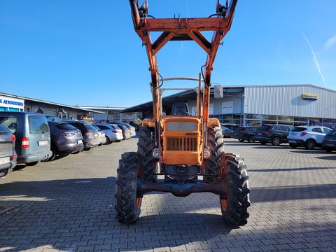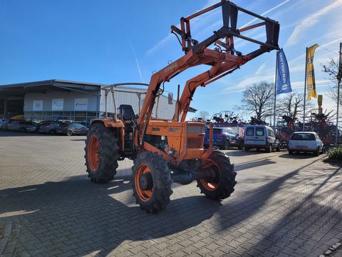 Allrad, Frontlader mit Hubzylinder, 1 doppelwirkende Steuergerät, mechanische Hubwerksregelung, Zapfwelle 540, 280/85 R24 80%, 16.9 R34 40%.Bereifung vorne: 280/85 R24