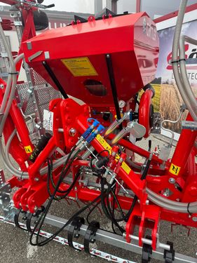 + GreenMaster Striegel 600 Schwerstriegel für Grünland und Acker: NonStop-Striegel 2-reihig mechanisch verstellbar, hydr.-Klappung und hydr.- Druckausgleich, Dreipunktturm, Konsole (Saattechnikaufbau), Tankrahmen für den Aufbau eines Pneumatikstreuers mit elektrischem oder hydraulischem oder mechanischem Gebläse, Stützfüße, 8 Tiefenführungsräder hinten(höhenverstellbar), Koppelsatz Standard mit Hydraulik Koppelplatte für dieKoppelung der Anhängewalze, Warntafeln mit LED Beleuchtung.Arbeitsbreite 6,00 m - Transportbreite 3,00 m. + Ripperboard 600 QUATTRO Arbeitsintensität lässt sich über Schraubverstellung anpassen. + Pneumatikstreuer EPS 5, 410L, mit verstärktem hydraulischem Gebläse - Hydraulisches Gebläse verstärkt BV mit Manometer - Auslassöffnung mit Schieber - 1 m Schlauch Ø 60 mm inkl. Bride - verstärktes Getriebe - 3 m Hydraulikschlauchpaket - 90 cm Schlauch Ø 76 mm (Gebläse - Sägerät) - 2 Klemmbrieden zu Schlauch Ø 76 mm - Gebläsehalter - Tankniveau- Anzeige - 8 Doppel- Verteilteller - Abdrehblech mit kleiner Schraube - Dosierwalze 8R3S - Bodenantrieb mit Winkelgetreibe WK4 (kurz) - Abdrehsack GÜTTLER - Saatgutschlauch Ø 26 mm beschichtet - Saatgutwaage - Antriebssaite 3,00 m zu Pneumatikstreuer EPS5 Wir freuen uns darauf, ihnen die Maschine zeigen und vorführen zu dürfen. Damit sich unser Verkaufsteam Zeit für Sie nehmen kann, bitten wir um eine kurze Terminabsprache vor der Besichtigung.