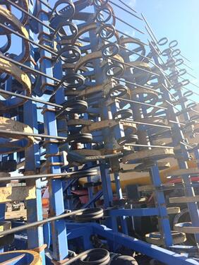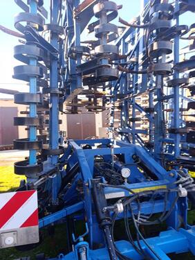Gezogen, Hydraulische Klappung, Stützfuß / -rad ________ 12m Grubber mit Fahrwerk, Stuetzraeder, doppel STS Walze, Crossboardschiene, Federzinken, StriegelZinken (Stk.): 72