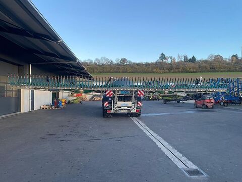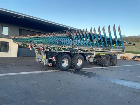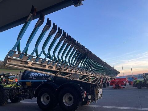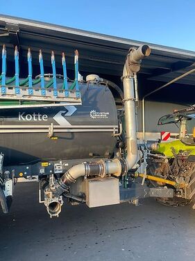 Kotte Vorführfass VT 17300 + Bomech Farmer 15m mit folgender Ausstattung: Kotte Güllewagen: zul. Gesamtgewicht 24t max. eingetragene Stützlase K80 4t Kupplungshöhe 650mm Farbe RAL 7016 Anthrazit Behälter 17.300 l Volumen, 1.900mm Ø, 5.850mm zyldr. Länge, 6mm Behälterwandstärke, Behälter mit 2K-Epoxidharz innenbeschichtet, Außenlackierung im Farbton RAL 7016 - Anthrazit, Rahmen durchgehend aus verstärktem Kantprofil 160, beidseitig Haken hinten am Fass, 3 verschraubte Schallwände im Behälter lt. DIN EDN 707, Mannloch DN 600 Schlauchhalter beidseitig Plexiglasschaurohr NW 100 mit Reinigungsmuffe Füllstandsanzeige mit Schwimmerkugel zusätzlich zu Plexiglasschaurohr Zusätzlicher 6" hydr. Glockenschieber hinten im Mannloch, mit zusätzlicher Versorgungsleitung für Schleppschuhverteiler Hydraulische Deichselfederung in Untenanhängung mit Kugelkopf K80 mit Verschleißbuchsen, inkl. Vorbereitung für Zwangslenkung, einschl. Handpumpe und hydr. Stützfuß für Tandem-Güllewagen Netto-Volumen ca. 16400 Liter Bereifung Vredestein 750/60R30,5 Flotation Trac TL 181 D, Felge 10-Loch, ET0 Radkästen pro Achse für Kunststoff-Kotflügel Tandem Original BPW Tandemaggregat mit Agroturn-Lenkachse mit Luftfederung in niedriger Bauweise, Achsvierkant 150x150, Bremstrommel 410x180, TÜV-Abnahme bis 60 km/h möglich, 2-Leiter Druckluftanlage mit automatischer lastabhängiger Bremse (ALB), einschl. Vorbereitung der Achse für Reifendruckregelanlage Spur 2225mm Halter für Nachrüstung RDS am Güllewagen Vorbereitung TL an der Pumpenkonsole Entlüftung Luftbälge der ersten Achse Tandem (Bei Umschalten von Feld- auf Straßenmodus werden die Luftbälge der ersten Achse automatisch wieder belüftet!) Kunststoff-Kotflügel Tandem Unterfahrschutz Tandem für VP mit Vorbereitung Beleuchtung LED Beleuchtung für Unterfahrschutz inkl. Rechteckrückstrahler und Warntafeln 2 LED Arbeitsscheinwerfer Heck, Anbindung Steuerung Güllewagen 2 LED Arbeitsscheinwerfer Kotflügel, Anbindung Steuerung Güllewagen Rundumleuchte LED Seitenbegrenzungsleuchte rechts und links TÜV-Abnahme 40 km/h mit Gutachten für KFZ-Brief von 18-32t Kompressor DL 180 Jurop, Luftleistung 17.600 l/min, Direktantrieb 1000 U/min bei Untenanhängung, Siphonabscheider und oberer Abscheider verzinkt, Vakuum-Luftfilter mit schalldämpfender Wirkung und Luftfilter für Injektorkühlung aus Edelstahl, geprüftes Sicherheitsventil, WW-Gelenkwelle Original Walterscheid PWE 480, 60h, mit Buchsbodenschmierung und Schwerbolzensicherung 10mm, mit Überhitzungsschutz über Signalhupe erkennbar, mit extra Feinstaubfilter hydr. Kompressorumschaltung mit Anbindung an die Steuerung des Güllewagens externe Bedienung Kompressor Profi-Befüllhilfe NW200 OMS100 mit seitlicher Reinigungsöffnung vorne unter dem Behälter montiert, einschl. Rundflansch NW 200 vorne unter dem Behälter, mit Ansaugmöglichkeit links und rechts über T-Stück NW 200 (verzinkt), Antrieb über Danfoss-Motor OMS100, Antriebsleistung min. 80l bis max. 100l Stutzen Ø200mm hinten unter dem Behälter Flansch 8" mit Rohrbogen Ø150 HL unter dem Behälter Glockenschieber 6" VL mit Reduzierstück NW200 auf NW150 mit Handhebel und Schnellkuppler NW 150 mit Schauglas und Belüftungshahn vorne links Glockenschschieber 6" VR mit Reduzierstück NW200 auf NW 150 mit Handhebel und Schnellkuppler NW 150 mit Schauglas und Belüftungshahn vorne rechts Fremdkörperrechen 6" für Ansaugstutzen Saugrüssel Ø200mm VR mit 1 Drehgelenk, flanschbar, hydr. dw betätigt mit Keilflanschschieber hydr. ew betätigt inkl. Belüftungsventil, Länge des Saugrüssels vom Drehpunkt bis Mitte Saugglocke ca. 1693mm Kombination Saugrüssel vorne rechts mit Befüllhilfe Adapterstück für Saugrüssel Ø200mm mit Drehgelenk, Adapterlänge 200-500mm Saugschlauch System Perrot, Ø150mm, 5m, mit V-Teil und Fußstück Saugschlauch System Perrot, Ø200mm, 5m, mit V-Teil und Fußstück Blinddeckel Ø600mm zur späteren Montage eines hydr. Einfülldoms Entlüftungsleitung NW 150 oben am Plexiglasschaurohr mit hydr. Glockenschieber NW150 einschl. Entlüftungsrohr NW100 am Behälter nach unten verlegt Schmierleiste mit 14 Stellen BPW Luftfederung mit 2 Schmiernippeln, inkl. Progressivverteiler 2x Mech. Dosierschieber 6" mit Handrad für Vakuumtankwagen Vorbereitung Vierpunkt-Anhängung L an der Rückwand des Behälters, mit Halterung für Quertraverse für Dreipunkt-Anhängung, mit flachem Mannlochdeckel mit 6" Lochbild, seitlicher Halter am Behälter für Arretierung Anbaugeräte, einschl. Halterungen für Versorgungsleitungen unter dem Behälter Bomech Schleppschuhgestänge: Arbeitsbreite 15m Schleppschuhe aus gehärtetem Stahl mit speziellen Gummidüsen und Federhaltern 2x hydr. angetriebene Verteilerköpfe Alrena V42 anstatt V30 Reihenabstand 18,75cm anstatt 25cm Transportbreite 2,99m Gewicht ca. 1750kg Hydraulikzylinder mit Endlagendämpfung integriertes Hangausgleichsystem im Mittelrahmen und den Seitenarmen Anfahrschutz rechts und links Nachtropfsperre durch Hochdrehen der Ablaufschläuche Abstellstützen Stützräder rechts und links LED Beleuchtungssatz mit Warntafeln Anbaupaket für BOMECH Farmer für vorhandene Vierpunktkonsole in Festanbau bestehend aus: Anbaukonsole für Festanbau, beidseitigen Transportverriegelungen, Schlauchsatz, Güllebox, Bögen und Zuführschlauch 4x Teilbreitenabschaltung je Schlauch über Absperrung mit Kugelhähnen 2x Druckmanometer für Verteilerköpfe zur Drucküberwachung Bedienterminal SmartControl Mini inkl. Vorbereitung für ISOVUS-Gateway robustes blendfreies 4,3" Farbdisplay mit Drehencoder inkl. Enter-Funktion und 11 Tasten, integrierter Not-aus Schalter sowie Ebenenwahlschalter, integrierter Summer, Tastenbelegung durch Bediener veränderbar, Vorbereitung für Anschluss eines Joysticks mit bis zu 16 zugewiesenen Funktionen und Automatiklinien (Befüllen, Ausbringen), CANBUS-System mit komplettem Steuerblock, einschl. Hochdruckfilter in der Druckleitung, RAM-Kugel-Halterung