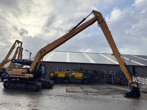 Hyundai HX300LR - 18 meter Long Reach Hammer Lines / Automatic Greasing Year: 2016 Reference number: BM006997 Hours: 8.748 Type HX300LR - 18 meter Long Reach Location Veldhoven, Netherlands Other Stick 7.90 meter - Boom 10.15 meter Certificate: CE + EPA Available at Boss Machinery! This Hyundai HX300LR - 18 meter Long Reach Excavator from 2016 has an engine power of 171 kW and counts 8748 operational hours. The total weight of this Hyundai HX300LR - 18 meter Long Reach is 34870 kg and the dimensions are 14.75 x 3.40 x 3.47. Furthermore, this HX300LR - 18 meter Long Reach is equipped with Camera, Radio, Hammer function, Central greasing. The Hyundai Excavator also has a CE + EPA marking. Do you want more information or do you want to try the Hyundai HX300LR - 18 meter Long Reach at our yard? Please let us know. Sizes/Weights L*W*H: 14.75 x 3.40 x 3.47 Weight: 34870 Engine information Engine brand: Cummins Engine model: QSB6.7 Cylinders: 6 Turbo Capacity in kW: 171 Tires/Tracks Plate % 80 Sprocket % 60 Chain % 50 Plate width: 80 cm Options Camera Radio Hammer function Central greasingKontaktdaten: