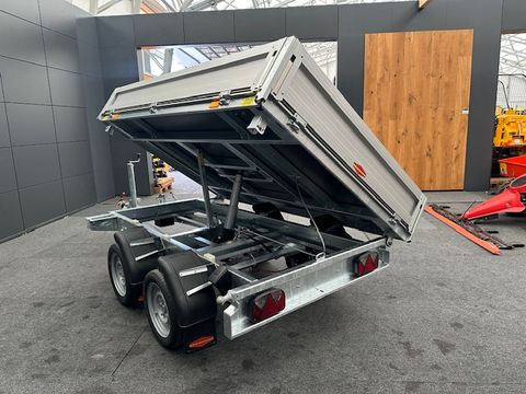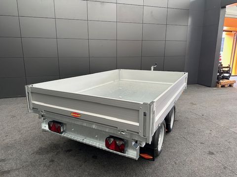 Böckmann Dreiseitenkipper DK-AL 2516/27 - Stahlblechboden - Stirnwand klappbar - Bordwände Alu 300mm - Langwegverschlüsse - Eckrungen herausnehmbar - 4 Zurrbügel in Seitenblende - Stützrad automatik - freitragende Deichsellänge 1250mm - Hydraulik mit Handpumpe - zul. Gesamtgewicht 2.700kg - Eigengewicht 691kg - Nutzlast 2009kg - Innenmaße LxBxH 2560 x 1650 x 300mm - Bereifung 13" (Ladehöhe reduziert) Das Verkaufsteam der Firma Mühlbacher Maschinen zeigt Ihnen den Anhänger gerne und bittet um Terminabsprache für eine Besichtigung bei uns im Betrieb. Besuchen Sie auch unsere 1.500m² große Ausstellungshalle!Zul. Gesamtgewicht (t): 2,7