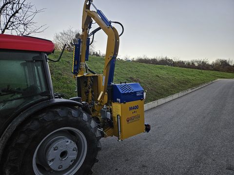 Spezieller Böschungsmäher mit Knickarm zum Übergreifen der Reihe – ideal für den Weinbau! Robust und dennoch leicht – dank STRENX-Stahl von SSAB! Ausstattung: + Profi-Maschine – hergestellt in Italien + Arbeitskopf mit Direktantrieb, 1 m Schnittbreite, Y-Messer/Hammer-Kombination – für Gestrüpp bis max. 3 cm Durchmesser + Teleskopischer Ausschubarm + Abstützung für den Dreipunkt + Eigenölversorgung mit Pumpe und Tank + Ölkühler + LED-Beleuchtung für den Straßenverkehr + Abstellstützen + Anfahrsicherung + Gelenkwelle + Eigengewicht: 740 kg + Mindest-Traktorgewicht: 2300 kg + Öltankinhalt: 125 l + Steuerung mit Seilzügen vom Fahrerplatz – optional mit Joystick und Proportionalventilen Preis mit Joystick und prop. Steuerung: 16.500,- inkl. MwSt.- PDF Datenblatt