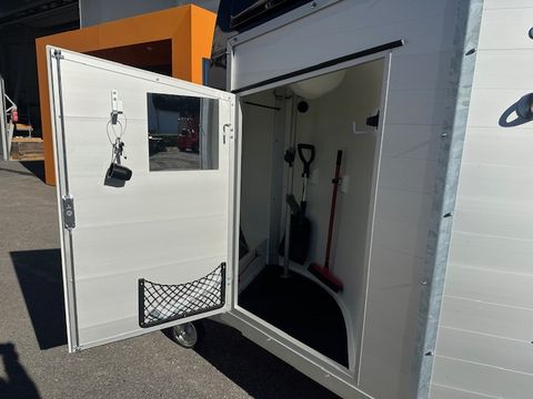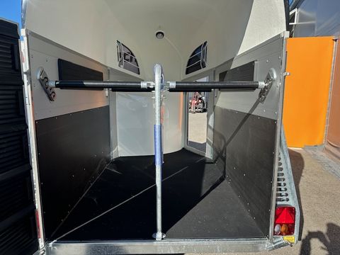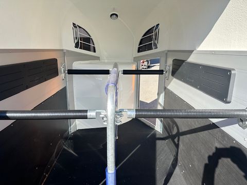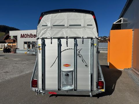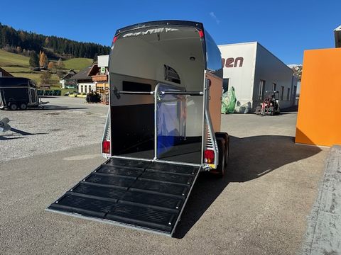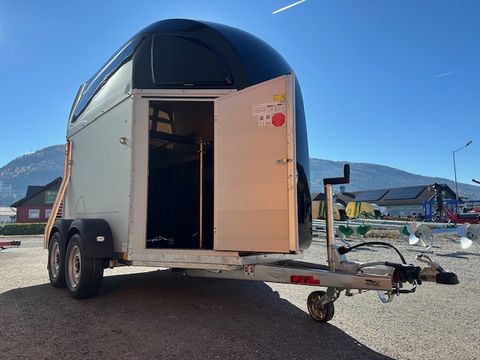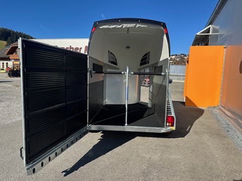 Böckmann Pferdeanhänger Champion R - Einzelradkotflügel Kunststoff (schwarz) - Planenlift mit integriertem Netz - Dekorstreifen mit Pferdekopf (Design Künster) - Gummibelag auf Hinterklappe (integrierte Trittleisten und Seitenstopp) - Einstiegstür rechts, abschließbar - 2 hintere Seitenstreben - Kennzeichenhalter mit 2 Auftritten - Hebevorrichtung - Gasdruckstoßdämpfer - Rangiergriff - 4 Hinterklappen-Scharniere - Heckstrebe geschlossen - Gummiboden verklebt und versiegelt - Böckmann Vollaluminium-Boden - Aufstellfenster in Polyesterhaube - Sattelkammer mit ausziehbarem Sattelhalter u. Besen/Schaufel/Netz/Spiegel - PVC Klarsichttrennwand mit PVC-Oberteil (Pferde mit Stockmaß 165cm) - Trittschutz seitlich Kunststoff (schwarz) - Seitenpolsterung (2 Stk) - Multi Safe System (Sicherheitsboxenstangen-System) - Boxenstangenzusatzpolsterung vorne - Innenbeleuchtung - Bereifung 14" Stahlfelge - Längsträgerfahrgestell mit V-Deichsel (geschraubt) - CFF-Plus Fahrgestell inkl. Radstoßdämpfer - Stützrad automatik - Innenmaße LxBxH ca. 3280x1650x2300mm - zul. Gesamtgewicht 2.700kg - Eigengewicht 809kg - Nutzlast 1.891kg - Polyesterhaube anthrazit-metallic - Polyesterbug anthrazit-metallic - Hinterklappe/1-Flügeltürkombination - 2,7to Gesamtgewicht Das Verkaufsteam der Firma Mühlbacher Maschinen zeigt Ihnen den Anhänger gerne und bittet um Terminabsprache für eine Besichtigung bei uns im Betrieb. Besuchen Sie auch unsere 1.500m² große Ausstellungshalle!Zul. Gesamtgewicht (t): 2,7