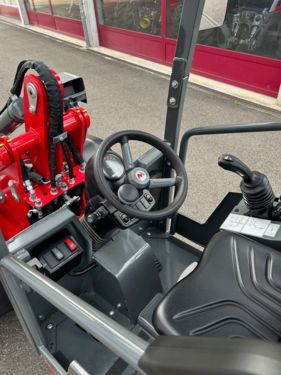 25 PS, Fahrerschutzrahmen mit Dach + Heckscheibe, Ladeschwinge LS 957 Höhe 251 cm, Euro 8 Aufnahme hydraulisch, 3. Steuerkreis Komfort, Ballastgewicht 100 kg, Rangierkupplung, Bereifung 400/50 – 15 Dumper, Lenksäule verstellbar, Gesamthöhe 198 cm, Hydrostatischer Allradantrieb 20 km/h, Ausstellungsmaschine