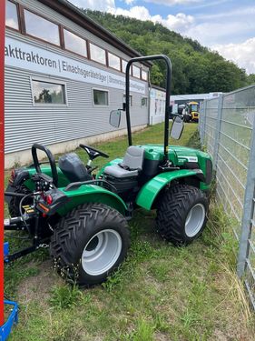 Der Ferrari Obst-/Weinbautraktor, Modell 2023, präsentiert sich als leistungsstarke und vielseitige Vorführmaschine, die speziell für den Einsatz in Obst- und Weinbaugebieten entwickelt wurde. Mit einem robusten Kohler KDI 1903 TCR Motor, der 49 PS liefert, ist dieser Traktor optimal für anspruchsvolle landwirtschaftliche Aufgaben gerüstet. Der Traktor verfügt über 90 Betriebsstunden (Stand: Juli 2025) und ist mit hochwertigen 33x15.50 XTC Rädern ausgestattet, die für hervorragende Traktion und Stabilität sorgen. Eine herausragende Eigenschaft dieses Modells ist die reversible Rückfahreinrichtung, die eine flexible Einsatzweise ermöglicht und den Arbeitskomfort erheblich steigert. Zur weiteren Ausstattung gehören zwei doppeltwirkende Steuergeräte sowie ein zusätzliches doppeltwirkendes Steuergerät in schwimmender Position, die vielfältige Anbaugeräte unterstützen. Die Zapfwelle arbeitet mit 540 U/Min und bietet die nötige Kraftübertragung für zahlreiche Anwendungen. Das CEE Zugmaul hinten sorgt für zusätzliche Funktionalität, während das verstellbare Lenkrad eine ergonomische Anpassung an die Bedürfnisse des Fahrers erlaubt. Insgesamt stellt dieser Ferrari Traktor eine ideale Lösung für Landwirte dar, die Wert auf Leistung, Flexibilität und Komfort legen.Bereifung vorne: 33x15.50 XTC
