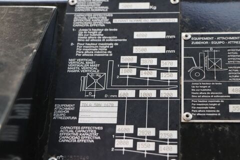Bauart: Frontstapler / Geländestapler, Tragkraft: 5000kg, Hubhöhe: 5500mm, Bauhöhe: 2910mm, Freihub: 1765mm, Gabellänge: 1200mm, Bereifung vorne: Luft Einfach 80 - 100% , Bereifung hinten: Luft Einfach 80 - 100% , Anbaugeräte: Seitenschieber, Sonderausstattung: 3. Ventil, 4. Ventil, Vollkabine, CE Zertifikat, Sonderausstattungbeschreibung: -Service Heft -CE Erklärung -Bedienungsanleitung -Ersatzteilhandbuch Beschreibung: Der Geländestapler M 50-4 ist für Tätigkeiten in schwierigem Gelände oder mit Hindernissen ausgelegt. Mit 4 Antriebsrädern und einer Bodenfreiheit von 43 cm bietet dieser Stapler unter allen Umständen eine gute Manövrierfähigkeit. Zur Anpassung an unterschiedliche Böden steht eine große Auswahl von Bereifungen zur Verfügung. Das dient der Optimierung Ihrer Produktivität. Die von beiden Seiten zugängliche, schwingend gelagerte Kabine bietet einen geräumigen Fahrerplatz mit ergonomischen Bedienelementen. Die hohe Fahrposition bietet eine 360°-Panoramasicht für mehr Sicherheit des Fahrers und seiner Umgebung.Kontaktdaten: