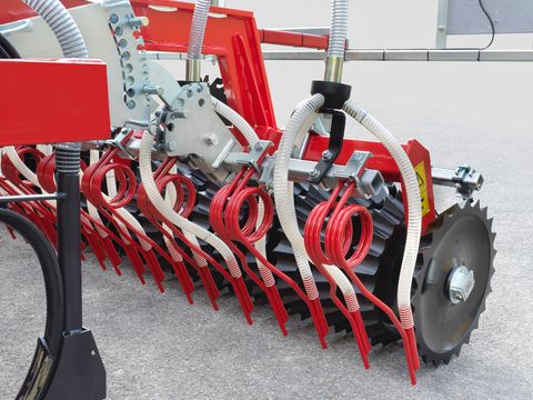 Universalgerät Zinkensämaschine ertl auer Bodenwerkstatt mit GÜTTLER Supermaxx 30 • zur Saatbettbereitung, Unkrautbekämpfung und Stoppelbearbeitung kraftstoffsparend und mit hoher Flächenleistung • GÜTTLER Großfederzahnegge SuperMaxx 30 • Prismenwalze RollFix mit Durchmesser Ø 45 cm aus leichtem Synthetik Ultra Material • Striegel mit Zinkensaatausstattung • Pneumatische Sämaschine mit 410 Liter für Hauptfrüchte und grobkörnige Leguminosen • Pneumatische Sämaschine mit 200 Liter für Feinsämereien • Grobsämereien können über die Zinken des SuperMaxx tiefer abgelegt werden • Feinsämereien werden entweder breitwürfig oder über die neue Zinkensaat vor der Walze ausgebracht werden. • Verbesserung des Wasserhaushalts • weniger Dieselverbrauch und Verschleiß • Universalgerät GÜTTLER Supermaxx zur ausgebaut in unserer ertl auer Bodenwerkstatt zur ZinkensämaschineZinken (Stk.): 22