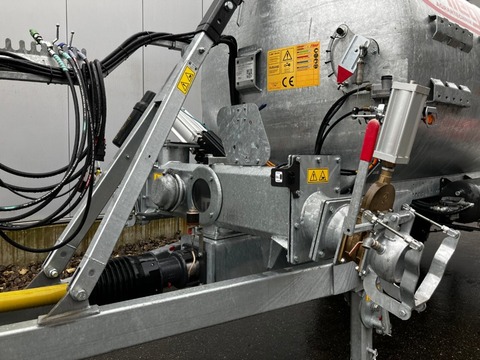 Fliegl Pumpfasswagen Fliegl PFW 8600L Maxx Linezul. Gesamtgewicht 12500 kg (entspricht 10000 kg Achslast zzgl. 2500 kg Stützlast)Zugdeichsel Untenanhängung mit Faßkippzylinder und Fallstützfuss (1 Steuergerät doppelwirkend erforderlich)Kugelkopf K802-Kreis-Druckluftbremse mit ALB40 km/h Ausführung mit EG Typgenehmigung und COC Papieren (incl. Kotflügel, Unterfahrschutz und Seitenmarkierungsleuchten)ungefedertBereifung 850/50 R 30.5 incl. Radausschnitt / Tragfähigkeit pro Rad 7750 kg bei 40 km/hVorbereitung für Schubdeckel vorneExzenterschneckenpumpe ARMATEC 4000 l mit Steinfangmuldeautomatische Pumpenumschaltung pneumatisch mit Messingschieber (beim Erreichen des maximalen Füllstandes, werden die Schieber auf den Umpumpmodus umgestellt)zusätzliche Anzeige am Bedienpult wenn das Fass leer ist durch optische (Lampe) und akustische Signalisierung, Schalter am Fass zum Umschalten der SchieberZugfahrzeug mit Druckluft erforderlich! Ist der Dreiwegeschieber geschlossen wird das am Bedienpult angezeigtPu, Gewicht:0