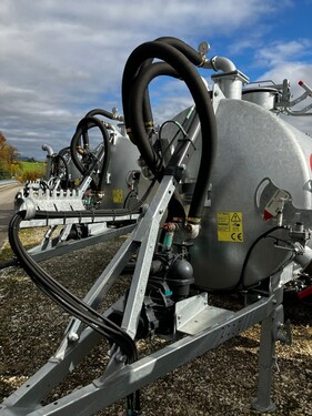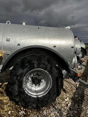 Vakuumfass Fliegl VFW 7500l Jumbo Line1-Achs FahrgestellNiedrige Bauweise, Achse 420x180 ADR, Spur 1820, max. Aussenbreite 2.55m zul. Gesamtgewicht 11000 kg (entspricht 9000 kg Achslast zzgl. 2000 kg Stützlast)verstellb. Zugdeichsel UntenanhängungKugelkopf K80 2-Kreis-Druckluftbremse mit ALBFasskippzylinder und Fallstützfuß (1 Steuergerät doppelwirkend erforderlich)ungefedert40 km/h Ausführung mit EG Typgenehmigung und COC Papieren (incl. Kotflügel, Unterfahrschutz und Seitenmarkierungsleuchten)Bereifung 710/50 R 26.5 incl. Radausschnitt / Tragfähigkeit pro Rad ca. 6000 kg bei 65km/hKompressor MEC 6500 l Battioni max. 540 U/min. hitzebeständige LamellenBehälter in Stahlausführung verzinktBlindflansch 6" vorne links, rechts und hinten6" Ansaugschieber mit Schnellkuppler linksFüllstandsanzeigerBeleuchtung 12 V 7-poliger Steckerhydraulischer Glockenschieber hinten am Mannloch (1 Steuergerät erforderlich)Schlauchablage (entfälllt bei Montage Schleppschuh/Schleppschlauchverteiler)durchgehend starker Wi