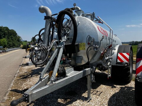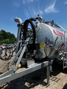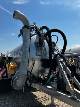 Vakuumfass Fliegl VFW 8600 JUMBO Line1-Achs FahrgestellGerade Achsezul. Gesamtgewicht 12500 kg (entspricht 10000 kg Achslast zzgl. 2500 kg Stützlast)verstellb. Zugdeichsel UntenanhängungKugelkopf K80 (Ø 80 mm)Deichselfederung incl. Fasskippzylinder und Fallstützfuß (1 Steuergerät doppelwirkenderforderlich)2-Kreis-Druckluftbremse mit ALBungefedert40 km/h Ausführung mit EG Typgenehmigung und COC Papieren (incl. Kotflügel,Unterfahrschutz und Seitenmarkierungsleuchten)Bereifung 850/50 R 30.5 / inkl. Radausschnitt / Tragfähigkeit pro Rad 7750 kg bei 40 km/hBehälter in Stahlausführung verzinktKompressor 10000l Hertell max. 540 U/min. hitzebeständige LamellenEinfülldom Ø 400 mm mechanisch mit Steigleiter vorne: Einfülldom Öffnung rechts,Steigleiter links montiertBlindflansch 8" vorne links, rechts und hintenBlindflansch links und rechts verstärkt für Turbobefüller6" Ansaugschieber mit Schnellkuppler linksFüllstandsanzeigerSiphonZusatzsiphon mit Schauglashydraulischer Glockenschieber hinten am Mannloch (1, Seriennummer:*