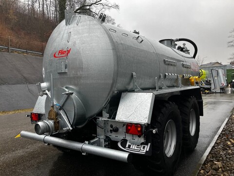 Fliegl MAXX Line Vakuumfasswagen VFW 12000Tandem Fahrgestellzul. Gesamtgewicht 18500 kg (entspricht 16000 kg Achslast zzgl. 2500 kg Stützlast)verstellb. Zugdeichsel UntenanhängungKugelkopf K80 (Ø 80 mm)Fasskippzylinder mit Fallstützfuß, ohne Druckspeicher (1 Steuergerät doppelwirkend erforderlich)2-Kreis-Druckluftbremse mit ALBParabelfederung Titan-Aggregat2 Bremsachsen, vordere starr, hintere gelenkt, hydraulisch sperrbar (1 DW erforderlich)40 km/h Ausführung mit EG Typgenehmigung und COC Papieren (incl. Kotflügel,Unterfahrschutz und Seitenmarkierungsleuchten)Bereifung 560/60 R 22.5 / Tragfähigkeit pro Rad 6300 kg bei 40 km/h, 4625 kg bei 60 km/hKompressor 10000 l Hertell, max. 540 U/min. hitzebeständigBehälter in Stahlausführung verzinktBlindflansch 8" vorne links, rechts und hintenBlindflansch links und rechts verstärkt für Turbobefüller6" Ansaugschieber mit Schnellkuppler linksVorbereitung für Einfülldom Ø 400 mm vorneFüllstandsanzeigerSiphonSchaumabscheiderhydraulischer Schieber hinten (1 Ste, Seriennummer:*