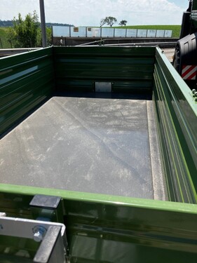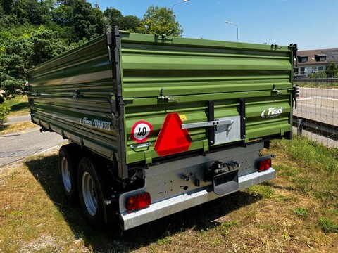 Dreiseitenkipper Fliegl TDK 100 VF FOXTandem Fahrgestellzul. Gesamtgewicht 10000 kg (entspricht 8000 kg Achslast zzgl. 2000 kg Stützlast)V - Rahmen verzinktBrücke 4500 mm x 2220/2170 mm (konisch), Eckrungen steckbar, Zentralverriegelung rechts, links und hinten, Getreideauslauf 400mm x 230mm in der Grundbordwand, Ganzstahlboden, umlaufende Gummidichtung in Spezialprofilgeführt, Brückenrahmen aus hochwertigen Stahlprofilen, novagrau lackiertGrundbordwand 4500 mm x 2220/2170 mm x 500 mm (konisch), Stahlbordwände (sandgestrahlt, grundiert u. pulverbeschichtet in dunkelgrün)erster Aufbau 500 mmParabelfederung Jumbo Titan-Aggregat, begr. Pendelausgleich (nur mit Bereifung 19.0/45-17 und 355/60-18 möglich)2 Bremsachsen, beide starr2-Kreis-Druckluftbremse mit ALBZugholm starr für ObenanhängungDIN-Zugöse 40 (Ø 40 mm)Bereifung 355/60 R18 / Tragfähigkeit pro Rad 3250 kg bei 40 km/h40 km/h Ausführung mit EG Typengenehmigung und COC Papieren (incl. Kotflügel, Unterfahrschutz und Seitenmarkierungsleuchten)Stüt, Seriennummer:*