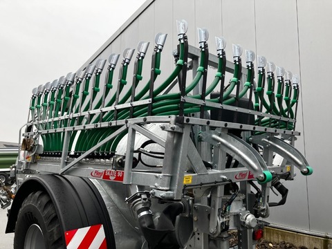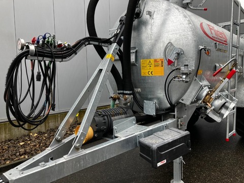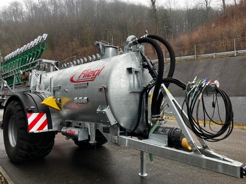 Vakuumfasswagen Fliegl VFW 8600L Jumbo Line mit Schleppschuhverteiler Skate 90zul. Gesamtgewicht 12500 kg (entspricht 10000 kg Achslast zzgl. 2500 kgStützlast)verstellb. Zugdeichsel UntenanhängungKugelkopf K802-Kreis-Druckluftbremse mit ALBDeichselfederung incl. Fasskippzylinder und Fallstützfuß (1 Steuergerät doppelwirkend erforderlich)ungefedert40 km/h Ausführung mit EG Typgenehmigung und COC Papieren (incl. Kotflügel, Unterfahrschutz und Seitenmarkierungsleuchten)Bereifung 850/50 R 30.5 incl. Radausschnitt / Tragfähigkeit pro Rad 7750 kg bei 40 km/hKompressor 10000 l Hertell, max. 540 U/min. hitzebeständigBehälter in Stahlausführung verzinktBlindflansch 8" vorne links, rechts und hintenBlindflansch links und rechts verstärkt für Turbobefüller6" Ansaugschieber mit Schnellkuppler linksFüllstandsanzeigerBeleuchtung 12 V 7-poliger Steckerhydraulischer Glockenschieber hinten (1 Steuergerät erforderlich)durchgehend starker WinkelrahmenMannloch Ø 600 mm hintenSiphonZusatzsiphon1 SchwallwandEinfülldom , Gewicht:0