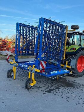 Arbeitsbreite 9,20m (Teilbreiten 6,20m 3,00m) Feldbreiten: Mittelteil: 2986mm - Innenfelder: 1670mm Außenfelder: 1418mm ahmenmaterial: Strenx 700 - Stahl zur Optimierung der Steifigkeit Patentiertes Doppelpendellager-Zinkensystem Strichabstand 28mm 329 Zinken Ø8mm Zinkenlänge 550mm Zinkendruckverstellung: manuelle zentrale Zinkendruckverstellung Einstellbare Reihenabstände: 45cm, 50cm & 75cm Einstellbare Schlepperspur: 150cm-225cm Striegelzinken-Vorspannung mit Kombifeder 100g-6000g stufenlos einstellbar ab ca. 100g wirkt die innenliegende Druckfeder ab ca. 650g setzt die Zugfeder ein Striegelzinken 120° mit Hartmetallbeschichtung Spitze S60 hydraulische Stufenlose Zinkendruckverstellung Verstellung über 1 DW Steuergerät inkl. gr. Skala überwachbar 6 Stützräder 16x6,50-8 luftbereift mit AS-Profil in Front Der Preis der Maschine bezieht sich auf den technischen Zustand und die Ausrüstung wie lagernd. Standort Filiale: Colmar - Berg / Luxembourg. Aus etwaigen Irrtümern und falschen Angaben entstehen keinerlei Ansprüche. Weitere Auskunft erteilt Ihnen gerne unser Verkaufsteam Herr Kruppert, Herr Schrenger, Herr Daniels oder Herr Kleyer.Kontaktdaten: