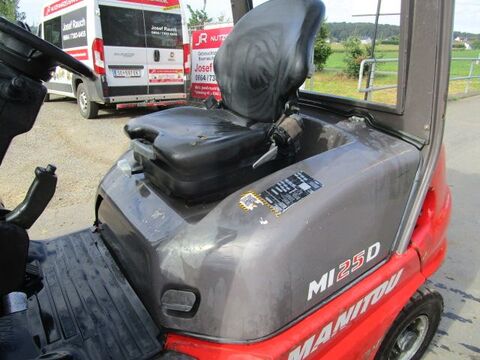 Bauart: Frontstapler / Dieselstapler, Tragkraft: 2500kg, Hubhöhe: 4700mm, Bauhöhe: 2160mm, Bereifung vorne: Vollgummi Einfach 20 - 40% , Bereifung hinten: Vollgummi Einfach 80 - 100% , Anbaugeräte: Seitenschieber, Sonderausstattung: 3. Ventil, 4. Ventil, Dachabdeckung, Frontscheibe, Halbkabine, Beschreibung: Frontstapler - Dieselstapler MANITOU MI25D - - - 2,5 Ton. Hubkraft - - Seitenschieber - - Triplex-Freihubmast - - - Bauhöhe 2,16m - - Hubhöhe 4,70m - - - Baujahr 2019 - - 6007 Betriebsstunden lt. Zähler - - - 4-Zylinder YANMAR Dieselmotor 47 PS - - Vollgummireifen - - 4. Steuerkreis bis Gabelträger - - - mechanische Hydraulikhebel - - sehr wendiger Stapler