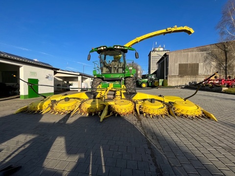 Selbstfahrender Feldhäcksler Hersteller: John Deere Modell: 9800 Baujahr/Modelljahr: 2021 Seriennummer: 1Z09800YHMU621512 Erfassungsnummer: 535759 Motorstunden: 1200 h Trommelstunden: 700 h V12 Liebherr Motor mit 24,2 Liter Hubraum Leistung: 640 KW / 870 PS Ausstattung: 1222 Premium-Sitz mit Lederbezug 1320 2 Rückspiegel, elektrisch einstellbar und beheizbar 1378 Premium-Beleuchtungspaket (LED) 1415 Premium-Radiopaket 1611 Feuerlöscher-Paket 1773 " I" -CompleteSF1 1785 Lenksystemvorbereitung 1881 StarFire 6000-Empfänger SF1 191D GreenStar Display 2630 (armlehnenmontiert) 1979 Premium-Aktivierung 3.0 4640 Gen. 2063 ProDrive-Getriebe in 40-km/h-Ausführung (25 mph) 2415 Automatische Erntevorsatzführung (AHC) 2425 Automatische Zapfwellenkupplung für Erntevorsatzantrieb 2431 Dualer Erntevorsatzantrieb 2723 Dura Line Ultimate 4006 Messerhalterung für Dura-Drum-Messertrommel 4017 Grasmesser und DuraLine Plus-Gegenschneide 4070 Dura Line-Messerhalterung 6420 Halbautomatische Anhängevorrichtung 6616 VF 620/75 R32 Michelin AxioBib 2 670C VF 800/70 R38 Michelin AxioBib 2 7382 Zusätzliche Plattengewichte mit 720 kg Zusatzgewichte 8112 Automatische Auswurfkrümmerpositionierung Vorbereitung 8117 Auswurfkrümmer-Kamera 8133 Bordsteinspiegel 8139 Kühlbox 607 8140 Heck- und Seitenscheibenwisch- und -waschanlage 8141 Heckkamera 8142 Deluxe-Servicebeleuchtungspaket 8144 Display-Montageschiene 8148 Premium-Arbeitsscheinwerferpaket (LED-Ausführung) 8185 HarvestLab 3000 8315 Verstärkte Vorpresswalze vorn unten 8318 Steinschutzleiste 8319 Steindetektionssystem 8320 Vorpresswalzen-Schutzabdeckung 8376 Elektrische Spaltverstellung für Körnerprozessor 8380 Kran zum Körnerprozessorausbau mit elektrischer Winde 8426 Hochleistungsantrieb für Erntevorsatz. 8534 Vorbereitung für aus- und einklappbaren Auswurfkrümmer 8535 ProTouch 8602 Zusatzsteuergeräteanschluss hinten 8672 Zwei Unterlegkeile mit Halterung 8715 Chrom-Auspuffrohr 8720 Signalhorn 8784 LED-Rundumleuchten 8801 Siliermittelbehälter und -dosiersystem, werkseitig 9325 Zusätzlicher Körnerblechsatz (beiliegend) 9389 Drehzahldifferenzial 40% 9417 Messersatz mit 70 Maismessern 9420 Maisgegenschneide 9552 Ausklappbare Verlängerung für 12Reihen Maisgebiss und Maisausrüstung sowie Pick-up gegen Mehrpreis erhältlich Standort: D-88422 Kanzach Ihr Ansprechpartner: Frank Linzenmeyer Tel: 01 71 7 45 63 72 oder Andreas Neher 01 74 21 71 478 Allrad = Ja Antrieb = hydrostatisch Arbeitsbreite = Trommel autom. Anhängevorrichtung = Ja Autopilot = Ja Bordcomputer = Ja elektr. Gegenschneide = Ja elektr. Schleifeinrichtung = Ja Grasvorrichtung = Ja Hektarzähler = Ja Kabine = Ja Klimaanlage = Ja Reifen-h = VF 620/75 R32 Reifen-h % = 90 Reifen-v = VF 800/70 R38 Reifen-v % = 90 Trommelstunden = 700 Zentralschmierung = Ja Zusatzgewichte KG ges. = 1000 Zusatzgewichte Stk = 10Kontaktdaten: