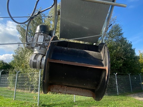 Irrtum + Zwischenverkauf vorbehalten. Getreidekanone Rako RGK 200: Baujahr 2014, Länge 12m, Einlauftrichter mit Schutzgitter und Regulierschieber, Auswerfer im Auslauf, Pendelachse mit Laufrollen, Elektromotor mit 7,5 KW.Kontaktdaten: