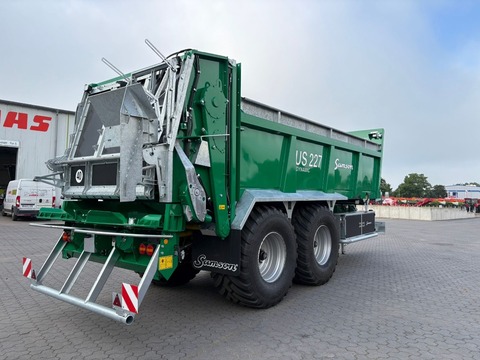 US 227 - Feste Seiten mit 25 cm zusätzlicher Höhe - Inhalt 27 m3 SpreadMaster 8500 Betrieb inkl. LS, ISOBUS über Traktor Terminal Hydraulische Heckklappe + hydraulischer Dosierschieber mit Gummikante ( am Bildschirm bedienbar) Alliance 750/60 R 30,5 Radial Type 885 SB Deichsel mit hydraulischer Federung Marinekette ø14x50 mit Activ Hydraulic Tension System und L-förmigen Mitnehmern 2 Walzen Durchmesser 71 cm Dynamische Wiegeeinrichtung mit Automatische volumetrische Dosierung Zentralschmierung mit Überwachung der Zentralschmierung, 2 Walzen Automatisches schließen des Dosierschiebers über Ultraschallsensor LED-Beleuchtung HELLA - 2 Einheiten auf der Rückseite, 2 Einheiten auf der Seite und 1 Einheit in der Kasten montiert. Insgesamt 17.000 Lumen Fahrgestellabdeckung Hydraulisch gefederten Chassis, Gesetzliche Beleuchtung (LED), Leiter auf dem Streuer montiert, Universal Streutisch mit 2 Streuteller und 4 Flügeln, Heavy duty Transmission mit Kettengetriebe in geschloßenden Ölbad, Hydraulischer Stützfuß. I/O Module (mit 5 freien Funktionen)Kontaktdaten: