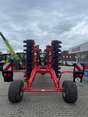 Enduro Pro 5000T Integrierte Aufsatteleinrichtung Achse mit Radgröße 480/45 R17 Unterlenkeranschluss Kat. 3 Schnellwechselzinken mit Abschersicherung Triflex - 700 Zinken (700kg Auslösekraft) 18 Zinken ( Strichabstand 27cm) Rahmenhöhe 87 cm Knock On 250mm (Schnellwechsel- Scharspitzen) Grindelschoner Tasträder hydraulisch einstellbar Hydraulische Tiefeneinstellung Arbeitstiefe 5-35cm Einebnung mit nivellier Scheiben Rückverfestigung mit Actripress Twin Walze Ø 560mm 220kg/m Irrtum + Zwischenverkauf vorbehalten.Zinken (Stk.): 18