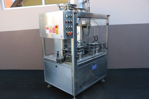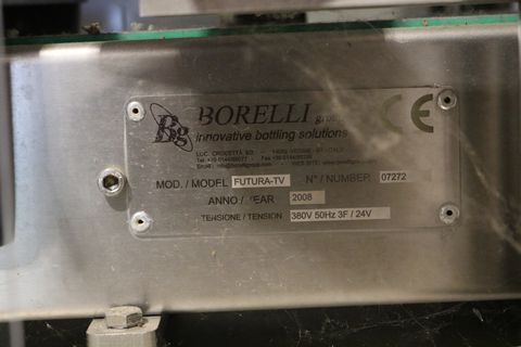 Borelli FUTURA – automatische Verschlussmaschine für Vinolok-Glasverschlüsse Beschreibung: Die Borelli FUTURA ist eine automatische Verschlussmaschine für Vinolok-Glasverschlüsse, ausgelegt für Weinflaschen mit 0,75 l Inhalt. Sie ermöglicht das präzise und schonende Verschließen von Weinflaschen mit Glasstopfen und ist mit einem integrierten Zuführsystem für Glasverschlüsse und Kapseln ausgestattet. Dank Edelstahlkonstruktion, kompakter Bauweise und höhenverstellbaren Standfüßen lässt sich die Maschine optimal in bestehende Abfülllinien integrieren. Technische Daten & Ausstattung: Geeignet für Vinolok-Glasverschlüsse Für 0,75 l Weinflaschen Leistung: ca. 2.000 Flaschen pro Stunde Automatische Zuführung der Glasverschlüsse Integriertes Kapselzuführsystem mit Anroller Vollständig aus Edelstahl gefertigt Höhenverstellbare Standfüße Baujahr 2008 Wenig verwendet, gepflegter Zustand Zur Integration in bestehende Abfülllinie geeignet Besonderheiten: Präzises Verschließen von Weinflaschen mit Glasstopfen (Vinolok-System) Hygienische Edelstahlkonstruktion – ideal für Weinabfüllung Kombination aus Glasverschluss- und Kapselstation in einer Einheit Kompakte Bauweise, einfache Integration in vorhandene Linien Zuverlässiger Betrieb bei gleichmäßiger LeistungKontaktdaten: