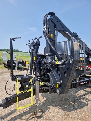 VORFÜHRGERÄT nur 10std benüzt Forstanhängerkombination H10D mit starkem Kran K7.86 Hubkraft bei 4m 1600kg Ausleger auf 8,60m/mit Zange 9,4m in Serienausstattung mit Achsen vorbereitet für Reibrollenantrieb mit Walvoil Prehydraulik Steuerung mit Druckfilter mit FlapDown-Abstützung B6 mit 60 kN Flanschrotator mit doppelter Pendelbremse mit Greifer 145cm C3 mit Eigenölversorgung, Stehpodest, Steuerblockhalterung und Gelenkwelle mit 2 Radbremse hydraulisch mit Vorbereitung für Kranseilwinde mit Kurbelstützfuß mit Tele mit LED Arbeitsscheinwerfer am Ausleger 2 Stk. mit Bereifung 500/50-17 auf Forstfelgenmit Schutzringe u. SchläucheZul. Gesamtgewicht (kg): 13000