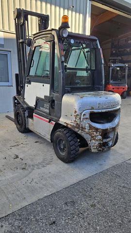 Nissan, Typ: YG1D2A30Q, Tragkraft 3000kg, Antrieb: Diesel Frontgabel-Stapler, Baujahr: 2009, Betriebsstunden: 8027, Hubgerüst: Standard, Hubhöhe: 4500mm, Bauhöhe: 2850mm, Freihub: 150mm, Gabelzinken: 1200, Vollkabine + Heizung, Beleuchtung, Arbeitsscheinwerfer, Anbaugerät: Zinkenverstellgerät + Seitenschieber, Zusatzhydraulik: 3 u. 4 Ventil, Bemerkung: fahrbereit, voll funktionstüchtig, Wartung durchgeführt,Kontaktdaten: