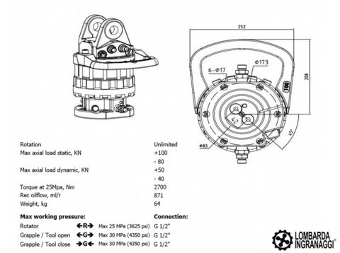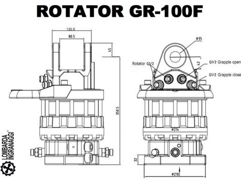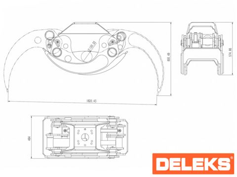 Holzzange, Holzgreifer DELEKS® für Kräne und Mini-Bagger 5 bis 10t DK-18 + Rotor Lombarda Ingranaggi GR100-F. ÜBERBLICK DK-18 Holzzange mit horizontal verbautem Hydraulikzylinder. Zum Laden und Transportieren von Baumstämmen und Strauchwerk. Inklusive GR100F 360° endlos drehender Rotor der Marke Lombarda Ingranaggi. Geeignet für alle Kräne und Mini-Bagger von 5 – 10 t aller Marken wie z.Bsp. Bobcat, Case, Caterpillar, Ihimer, JBC, Komatzu, uvm. Greifbereich: 0.36m2 Greifkraft: 13.1KN Aus hochbeständigem Stahl DIN S355 (Krallen: S700). Absperrventil am Hydraulkzylinder. Die perfekt ineinander greifenden Zangen erlauben eine enge und sichere Stellung während des Greifens und verhindert somit das Abrutschen des Transportgutes während des Ladens und Transportierens. 360° Endlosdrehung. Bolzen mit Führungsschiene. Farbe kann abweichen!Zul. Gesamtgewicht (kg): 2500