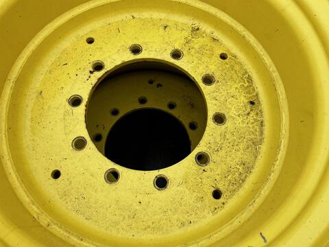 ________ Demontage von: John Deere 6155R Traktor Spur: 1800 mm, Radanschluss: 10/281/335 2 Stück Festfelgen, Größe: DW15L x 28, zu Reifengröße 420/85R28, Achsweite: 1940 mm, Einpresstiefe: ca. 7 cm, John Deere gelb, mit Farbschäden,