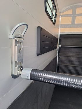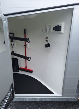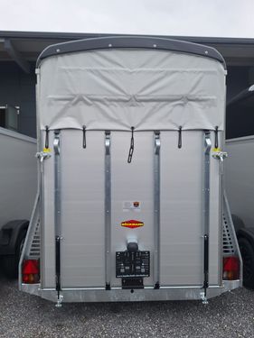 Innenmaße : 3270,00x1650,00x2300,00 mm Zulässiges Gesamtgewicht 2400 kg Nutzlast: ca. 1560kg Alu-Seitenwände 2000mm hoch Bereifung: 185/70 R 13, Felge: 4,5 J x 13 ET 30 Stützrad automatik 4 Hinterklappen-Scharniere Heckstrebe geschlossen Aluminiumboden Seitenwände 2000 mm hoch, Alu-elox. Aufstellfenster in Schräge rechts und links Planenlift (ohne Netz) Einzelradkotflügel, Kunststoff schwarz Innenbeleuchtung Gummiboden verklebt und versiegelt +Farbe Polyesterhaube: anthrazit-metallic +Farbe Polyesterbug: anthrazit-metallic +Multi Safe System (Sicherheitsboxenstangensystem) +PVC-Klarsichttrennwand mit PVC-Oberteil (Stm.165cm) +Paket Portax Alu bestehend aus: -Radstoßdämpfer -Gummi auf Beladeklappe (inkl. Trittleisten) -Seitlicher Trittschutz, Kunststoff (schwarz) -Sattelkammer innen, Sattelhalter ausziehbar, Besen, Schaufel, Netz, Spiegel +FahrzeugpapiereZul. Gesamtgewicht (kg): 2400