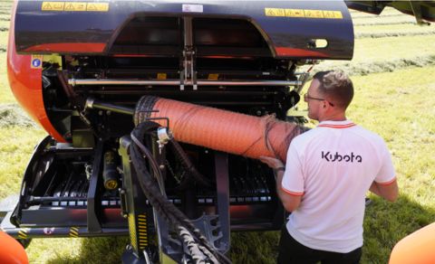Kubota BV5160 SC14 Plus Rundballenpresse Lagermaschine - sofort verfügbar! - variable Ballenkammer - Ballendurchmesser 0,60 - 1,65m - Ballenbreite 1,20m - Zugdeichsel höhenverstellbar Abmessungen Maschine: - Länge 4,48m - Breite 2,52m - Höhe 2,70m - Gewicht 3.250kg Ballenkammer: - 5 Endlosriemen - 3 Walzen - Ballenrollbahn - doppelter Riemenantrieb - Reinigungswalzen Pickup: - Aufnahmebreite 2,20m - Zinkenreihen 5 - Zinkenabstand 60mm - doppelte Zinkenträgerrohrabstützung - Rollenniederhalter - Luftbereifte Tasträder Einzug: - Super Cut-14 (14 Messer) - Messersicherung einzeln (Feder) - paralell absenkbarer Schneidwerksboden Antrieb: - geteilter Antriebsstrang - Ketten 1 1/4 Zoll - Walterscheid Weitwinkelgelenkwelle mit Nockenschaltkupplung - 540 U/min - zentrale Schmierleisten - schmierbare Walzenlager - permanente Kettenschmierung - Leistungsbedarf min. 55KW/75PS Bindung: - PowerBind-Netzbindung - Ersatzrollenhalter 2 Bedienung: - ISOBUS gesteuert nach DIN - Hydraulikasnchlüsse 1x EW, 1x DW, 1x FR Bereifung: - 550/45-22.5Kontaktdaten: