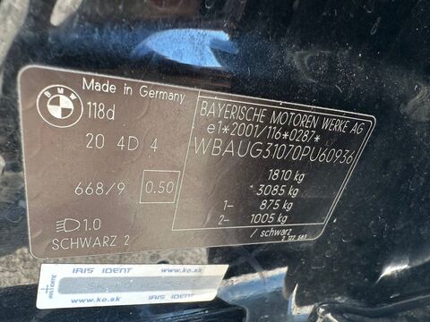 == Dodatočné informácie (SK) == BMW 118 D 1 2,0 r.v. 07/2006, 228515 km, EURO 4, hatchback, 1995 cm3, 90 kW, diesel, manuálna prevodovka 6st., 5 miest na sedenie, ALU disky, 2x elektrické okná + zrkadlá, bezkľúčové štartovanie, štart - stop systém, rádio + CD, vyhrievanie predných sedačiek, dvojzónová automatická klimatizácia, 8x airbag, abs, servo, asr, zadné parkovacie senzory, stk/ek 15/05/2027 CENA: 3.300,- EUR, nie je možný odpočet DPH Ponúknite Vaše vozidlo na protihodnotu, rozdiel môžete doplatiť aj formou splátok. Využite možnosť komisionálneho predaja. Poskytujeme výhodné financovanie prostredníctvom leasingu alebo úveru podľa požiadaviek klienta. Batérie môžu byť opotrebované, v tom prípade je potrebné si priniesť vlastné alebo kúpiť nové. Batteries can be damaged, you have to bring your own or you can buy new ones at our stockKontaktdaten: