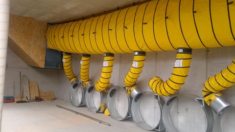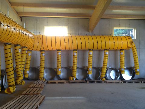 NOCH KURZFRISTIG LIEFERBAR! Beachten Sie bitte, dass es sich hierum um einen "ab Preis" handelt, je nach gewünschter Konfiguration kann daher der Preis variieren. Nehmen Sie hierbei mit uns Kontakt auf damit wir Ihnen ein maßgeschneidertes Angebot unterbreiten können. Die hier angebotene Konfiguration beinhaltet folgende Komponenten: - 1x Hauptschlauch Hot-Temp-Polyamid, Ø 700 mm, Länge 6700 mm - 8x Mobiler Belüftungsring Ø 900 mm für Ballendurchmesser Ø 1250 mm - 8x Verteilerschlauch Hot-Temp-Polyamid, Ø 300 mm, Länge 3000 mm - 1x Übergang Ventilator LHP 710 zu Hauptschlauch Ø 690 mm - 1x Ventilator LAAir, LHP 710 D, 11 kW, RD270 - 1x Frequenzumformer 15kW inkl. Parametierung für Ventilator Der Ventilator LAAir, LHP 710 D, 11 kW, RD270 hat folgende Eigenschaften: - Heubelüftungsventilator extra druckstabil - Motorleistung: 11,0 kW - Nennstrom: 18,91 A - Motordrehzahl: ca. 1465 U/min - Schutzklasse: IP55 - Frequenz: 50 Hz - Energieeffizienzklasse: IE3 - Spannung: 400/690 V - Leistung 6,58 m³/sec bei 10 mbar - Leistung 5,05 m³/sec bei 14 mbar - max. Druck 16 mbar - Lärm 78 dB(A) - Ansaugöffnung: rechtssaugend - Abmessungen: ca. 1310 (L) x 1205 (B) x 1416 (H) mm (ohne Transportmittel) - Gewicht: ca. 330 kg - Inkl. Funkenflugschutz - Inkl. Silentunterlagen (6 Stk.) Elektroinstallation und Aufbau Bauseits! Preis ab Werk! Besuchen Sie unsere Homepage! Folgende Produkte finden sie bei uns: Heutechnik / Trocknungstechnik / Heutrocknung: Ventilatoren für Heutrocknung und Heubelüftung Warmluftheizungen mit Hackgut / Hackschnitzelheizungen für Heutrocknung und Heubelüftung Luftentfeuchter für Heutrocknung und Heubelüftung Trocknungssteuerungen LASCO Heukran Anbaugeräte: Holzzangen / Holzgreifer mit Rotatoren Flanschrotatoren Doppelflanschrotatoren Baggeraufnahmen Original LASCO Kegelspalter - Vom Einstiegsgerät bis zum Profispalter mit 4-Motoren Duoscorp, Triscorp - Kombigeräte (Zange, Spalter, Säge) Mehrzweckgreifer Heiztechnik: Hackgut Warmluftheizungen Pellet Warmluftheizungen Scheitholz Warmluftheizungen Pelletheizstrahler SkyfireKontaktdaten: