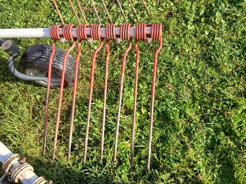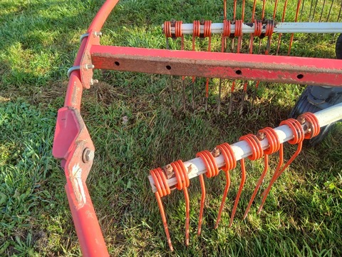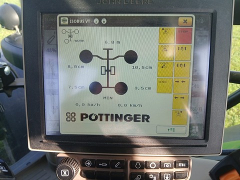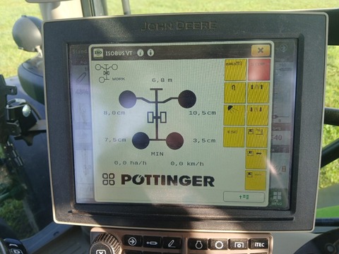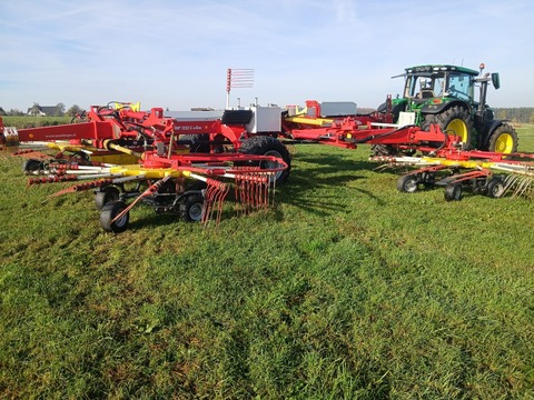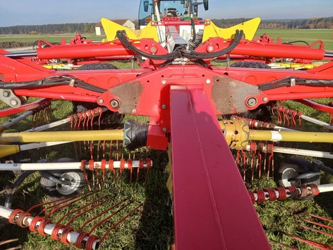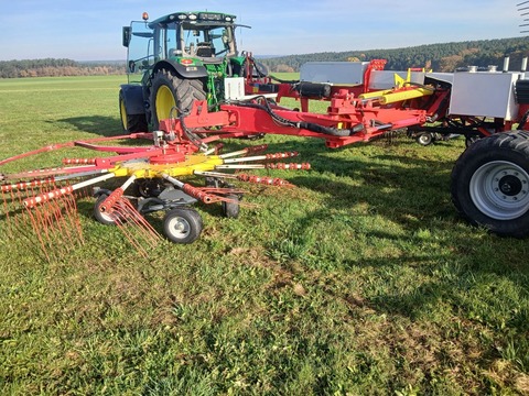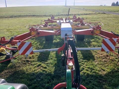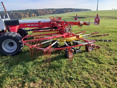 1 gebrauchter 4-Kreisel Mittelschwader Hersteller: Pöttinger Modell: Top 1252 C (Typ: 2441) Baujahr: 2015 Seriennummer: VBP00024012000468 Erfassungsnummer: 174767 Betriebsstunden: 1200 h Gesamtfläche: 5074 ha Unterlenkeranhängung Antriebsgelenkwellen ISO-Bus Bedienung und zusätzliches Terminal Druckluftbremsanlage 40 km/h 5 Tasträder unter jedem der 4 Kreisel 13 Zinkenarme je Kreisel Arbeitsbreite von 8,00 - 12,50 m Schwadbreite von 1,20 m - 2,00 m Transporthöhe 4,00 mit mit Zinkenarmen montiert minimal möglich 3,60 m Transportbreite: 3,00 m, Länge: 10,25 m Gewicht: ca. 6400 kg Antrieb der vorderen Kreisel hydraulisch die hintern beiden mechanisch hydraulische Verstellung der Rechhöhe nicht mehr neu aber Einsatzbereit sowie ehrliche Angaben der ha und Betriebsstunden. Standort: Zürn Landtechnik D-91448 Mausdorf weitere Info bei Manfred Leitmann oder Markus StröbeleKontaktdaten: