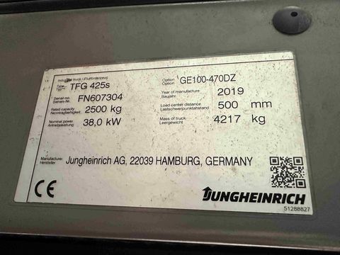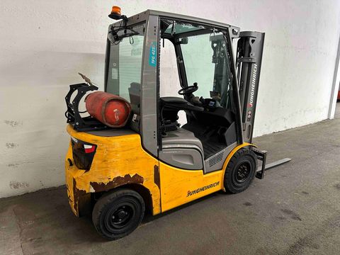 JUNGHEINRICH Gasstapler TFG 425s Baujahr: 2019 6960 Betriebsstunden laut Zähler Tragkraft: 2500 kg Hubmast: TRIPLEX-Freihub Hubhöhe: 4700 mm Bauhöhe: 2186 mm Freihub: 1612 mm Gabelzinken: 1200 mm - NEU ! Bereifung: Super-Elastik Motor: 4-Zyl. VW mit 38 kW Leistung - Seitenschieber - 4. Hydraulikkreis bis zum Gabelträger - Halbkabine - LED-Arbeitsscheinwerfer vorne - Safety Light hinten GUTER ZUSTAND ! Für etwaige Rückfragen steht Ihnen Herr Thomas Lehner natürlich gerne zur Verfügung !Kontaktdaten:
