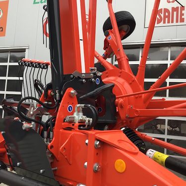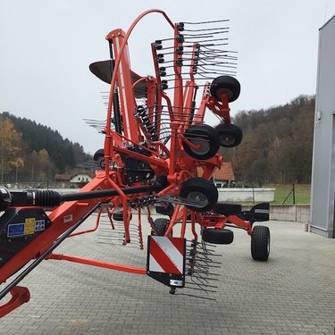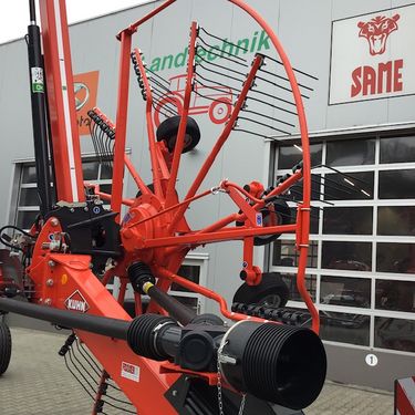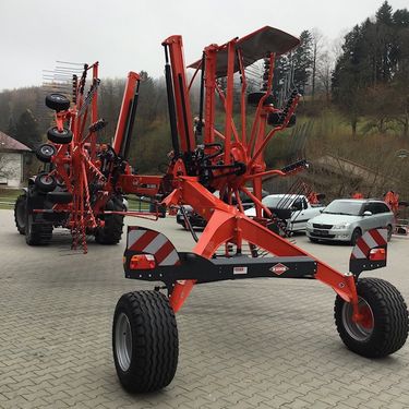 Arbeitsbreite 1 Schwad: 7,30 m ; 2 Schwade: 8,30 m Mittlere Schwadbreite 0,60 – 1,70 m Transportbreite 2,99 m Transportlänge 9,06 m Transporthöhe 3,85 m Schwadablage rechts Schwadtuch hydraulische Betätigung Anzahl der Kreisel 2 Kreiseldurchmesser 3,40 m Zinkenarme pro Kreisel 12 je 4 Zinken pro Arm Getriebe-Typ wartungsfreies MASTERDRIVE GIII-Getriebe Bodenanpassung 3D-Pendelaufhängung mit STABILIFT-Kreiselverriegelung in ausgehobener Stellung Fahrgestell 6 Räder Zinkenhöheneinstellung. Handkurbel Kreiselbereifung 16×6,50-8 Fahrgestell-Bereifung 15/55-17 Kreiselantrieb mechanischer Kreiselantrieb mit integriertem Freilauf Zapfwellendrehzahl 540 Anbau gezogen, Unterlenkeranbau Kat. 2 und 3N mit STABIDRIVE-Stabilitätssystem Leistungsbedarf PS. 70 Gewicht (kg), ca. 2500 Erforderliche Hydraulikanschlüsse 1 einfach und 1 doppelt wirkendes Steuergerät Gelenktes Fahrgestell Sequentielle Kreiselaushebung (ein Kreisel nach dem anderen) Kommen sie vorbei, das Team der Firma Fischer zeigt Ihnen das Gerät/Maschine gerne und bittet um Terminabsprache zwecks Besichtigung Wir freuen uns auf ihre AnfrageKontaktdaten:
